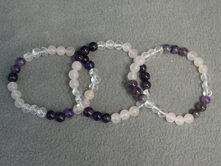 Bergkristal, Rozenkwarts en Amethist